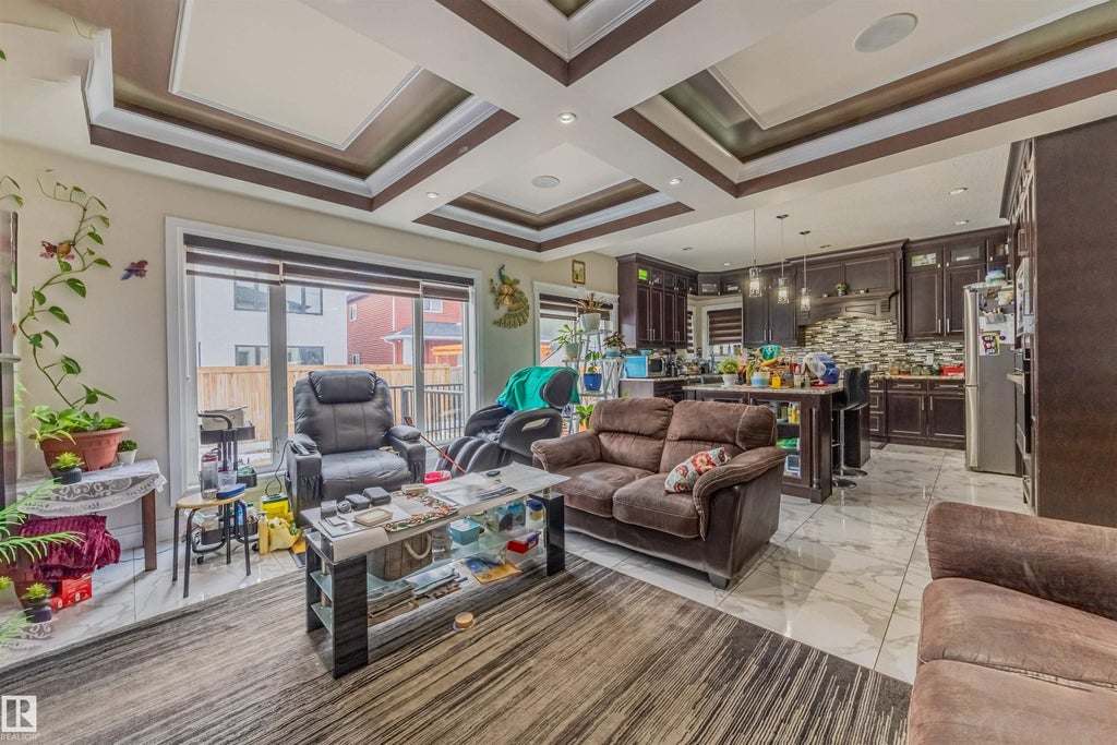 Custom-built Mcconachie treasure 5 bed, 4 full bath, 2546 sqft home designed for functionality! Step into a grand foyer w/ soaring double-height windows & an open-to-below design. Throughout, find beautiful millwork, including coffered ceilings, custom wall detailing, built-in cabinetry & panelled accents. The main floor boasts a dining room, two living areas—one w/ a NG fireplace—flowing into a chef’s kitchen w/ espresso cabinetry, glass inserts, granite countertops & large island. Patio doors open to a spacious deck & fenced yard. A main-floor bedroom w/ custom wall detailing & full 4-piece bath is perfect for guests or multi-generational living. Upstairs is a dream for large families, featuring versatile loft/bonus area & 4 spacious bedrooms all w/ walk-in closets. Primary suite impresses w/ dual walk-in closets & 5-piece ensuite w/ a soaker tub, dual sinks & a walk-in shower. Second bedroom w/ its own 4-piece ensuite offers added privacy & convenience. All this + separate basement side entrance!