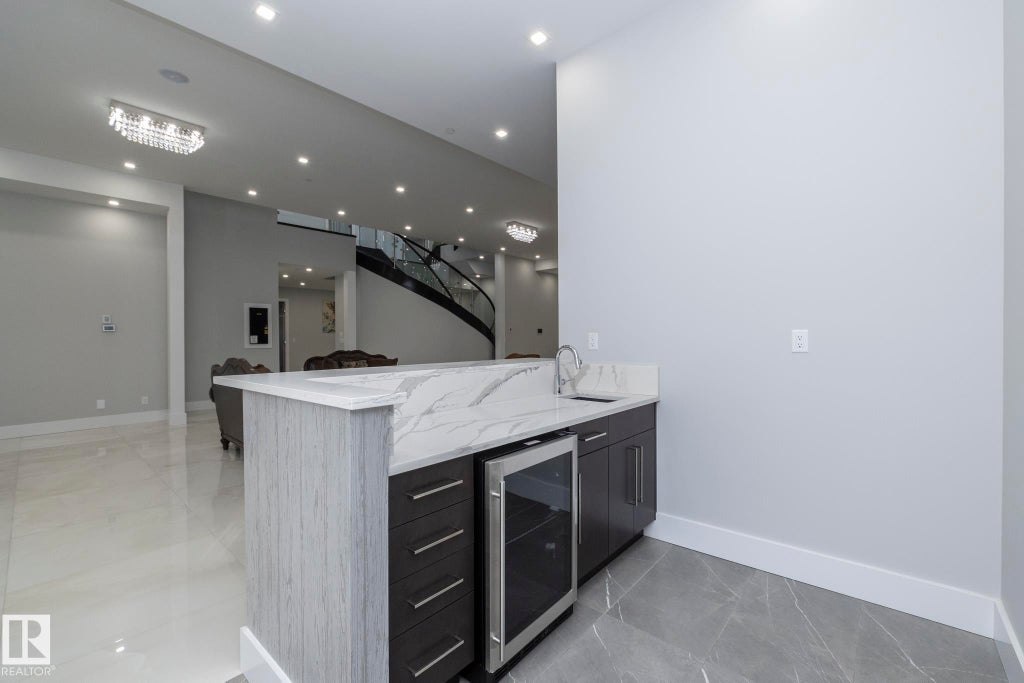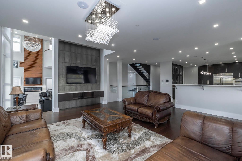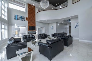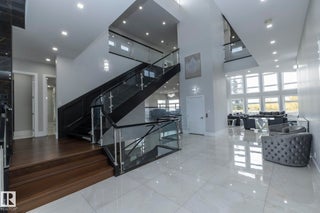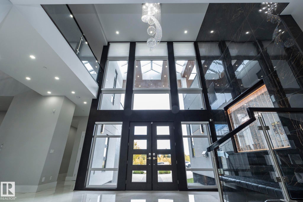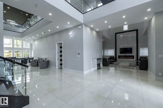 Discover an unparalleled lifestyle at The Banks at Hendriks Pointe in Edmonton, Alberta, Canada. This stunning architectural gem boasts nearly 15,000 sqft of luxurious living space, featuring 6 bedrooms & 9 bathrooms across 3 levels, all accessible via a private elevator. Enjoy breathtaking views from two grand formal living rooms & indulge your culinary passions in the chef’s kitchen, complete w/ top-tier appliances and a spacious center island, plus a dedicated spice kitchen. The upper level houses 4 exquisite bedroom suites, each w/ walk-in closets, full ensuites, & private balconies. The owner’s retreat is a true sanctuary, showcasing spectacular river views & an expansive walk-in closet. The highlight is the rooftop patio, offering 360-degree views of the North Saskatchewan River Valley. The lower level features a gym, theatre room, a 6th bedroom suite, and ample living areas, with multiple walkouts to a serene lower patio. Every detail reflects sophisticated craftsmanship, redefining luxury living.